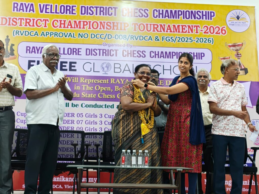 The Vellore District level chess championship was conducted at FIITJEE Global School, Katpadi under the auspices of the Royal Vellore Chess Association. Around 250 chess players from across the district participated in the competition. Events were held for both boys and girls in the categories of 5 years, 7 years, 9 years, 11 years, 13 years, 15 years, 19 years, 25 years, and Open category.